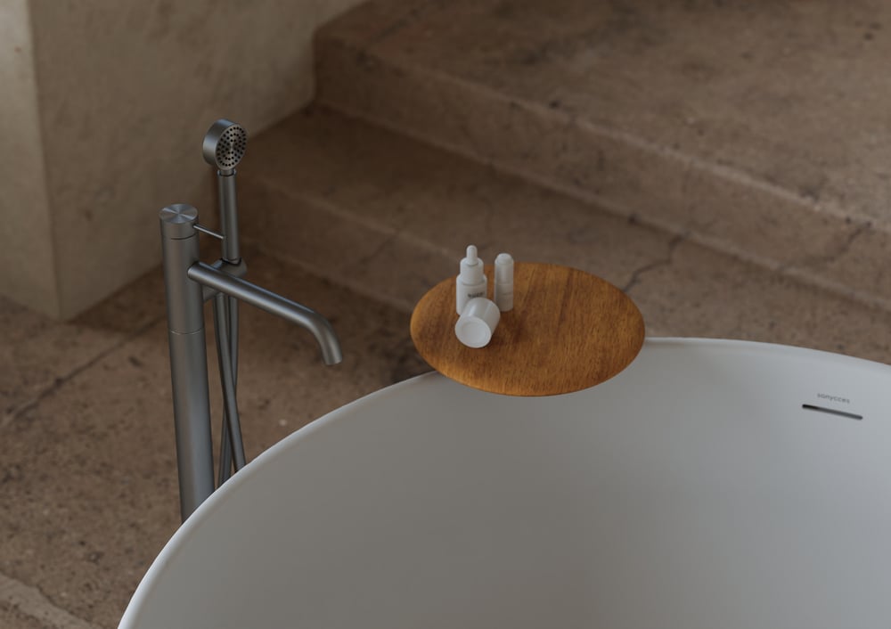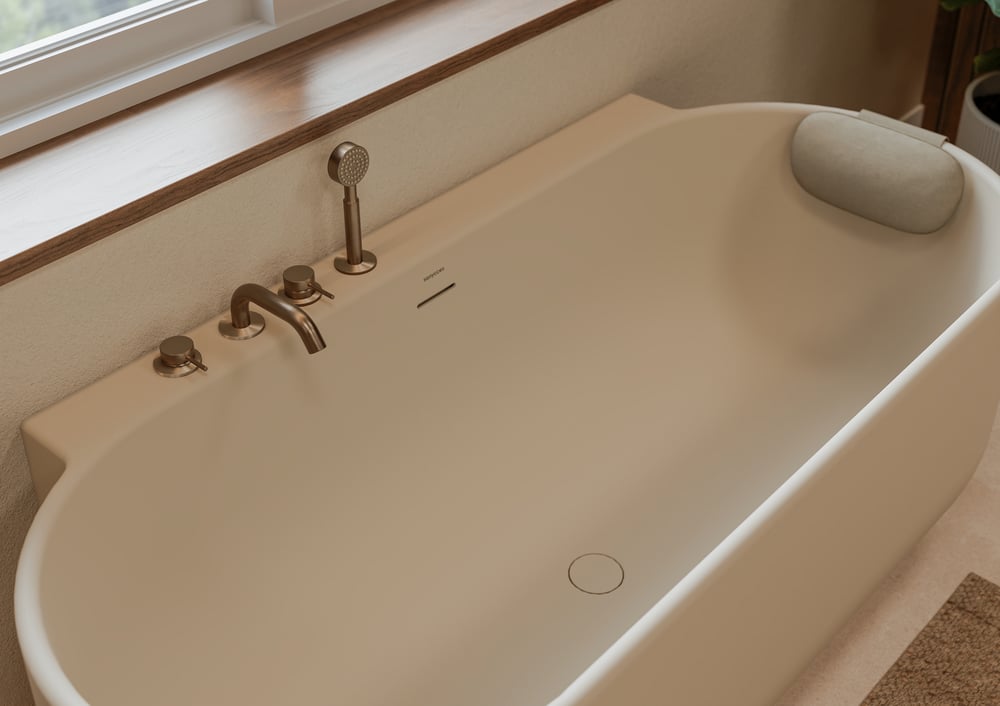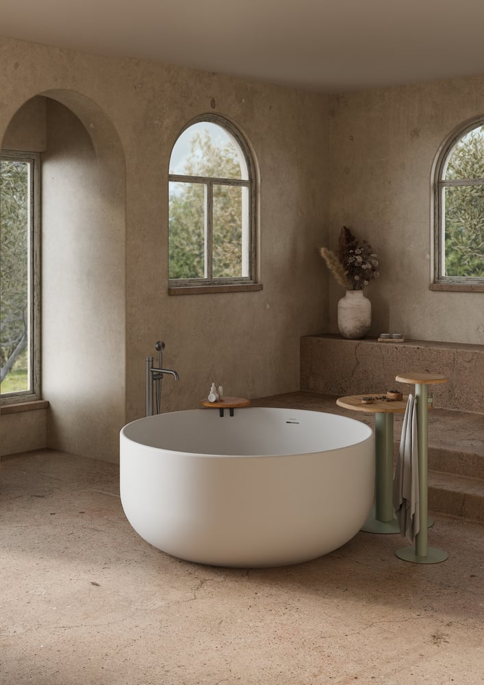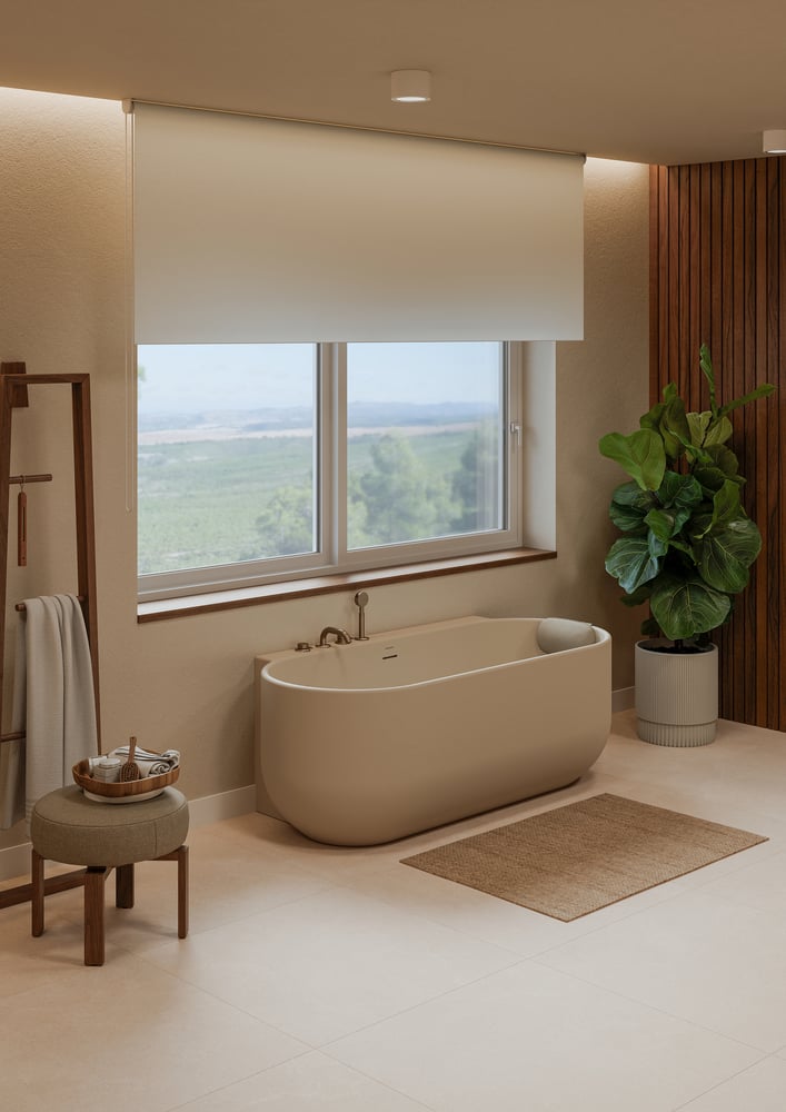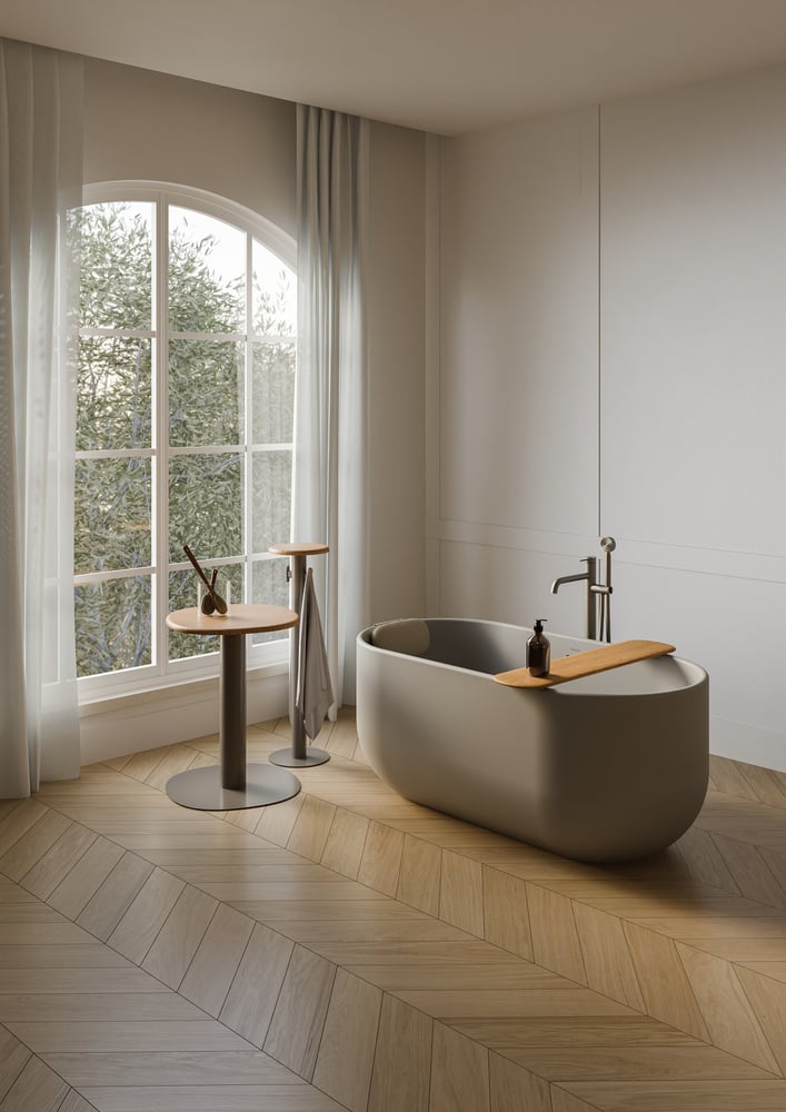 El objetivo no es solo mostrar la bañera, sino posicionarla: material, escala, uso y atmósfera.